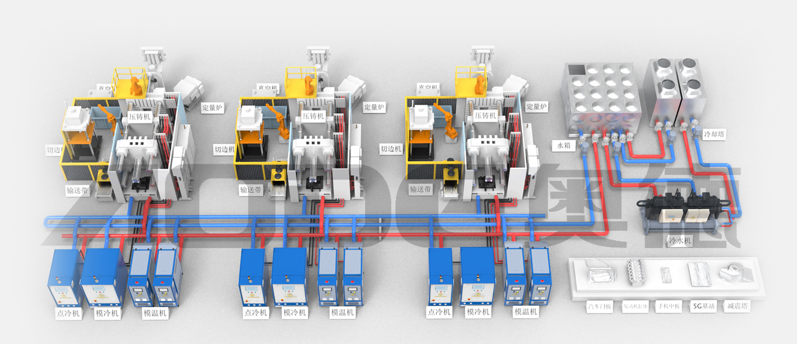 2.壓鑄溫控島一站式交付:模溫機(jī),點冷機(jī),模冷機(jī),冷水機(jī),純水機(jī),模具管道清洗機(jī).